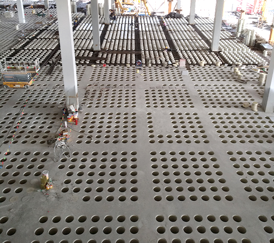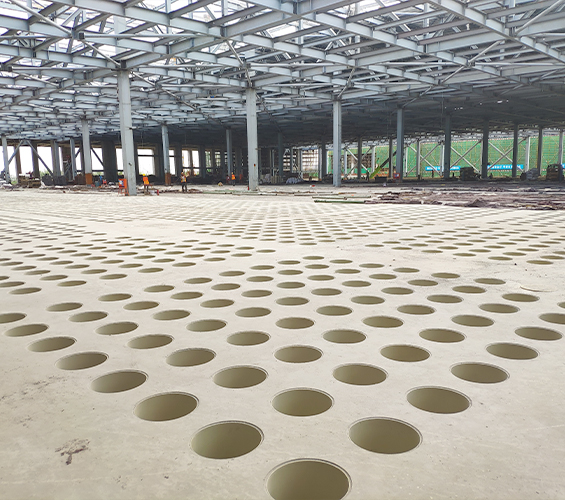 圓形華夫板的生產(chǎn)工藝具有以下優(yōu)勢:1.保證成孔準確與樓板平整度采用的生產(chǎn)工藝,使用標準模板...